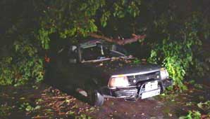 San Juan, 26 de diciembre.- Anoche, en medio de la fuerte tormenta que azotó a Caucete, un hombre salvó su vida de milagro, cuando un árbol se precipitó sobre el vehículo que conducía.