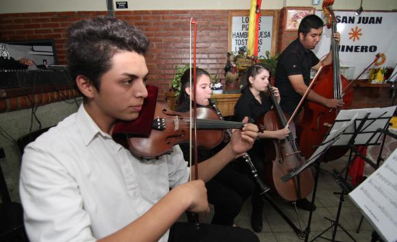 Con la reconocida melodía de la Pantera Roja, Nolberto Zárate, Julieta Zárate, Antonella Catanzaro Zárate y Rodrigo Gómez rompieron el hielo de la jornada. Y a pesar que nervios los invadió durante gran parte del festejo, porque era la primera vez que se presentaban en público, los chicos no dudaron en tocar varias canciones de manera impecable. Fueron ovacionados y hasta el público les pidió que tocaran otra canción. Así, luego de sus interpretaciones, los jóvenes de entre 15 y 20 años, abrieron el camino para la entrega de las menciones especiales.