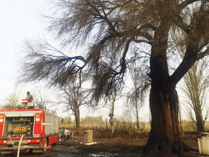 Un incendio hizo arder el “Árbol Histórico” de Huaco, que sufrió importantes daños