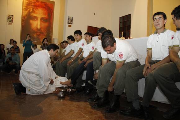 Algunos demoraron más de lo normal en desatar los cordones de sus botines. Torpeza provocada por el nerviosismo de vivir algo semejante: recibir una bendición especial por salvar vidas ajenas. Un acto divino que los emocionó al borde de las lágrimas. Se trata de los 12 bomberos voluntarios de Santa Lucía a los que anoche les lavaron los pies en la Parroquia Nuestra Señora del Valle, en ese departamento. La ceremonia fue emotiva por partida doble, ya que tanto la parroquia como este cuerpo de bomberos fueron inaugurados el mismo día, el pasado 4 de marzo.