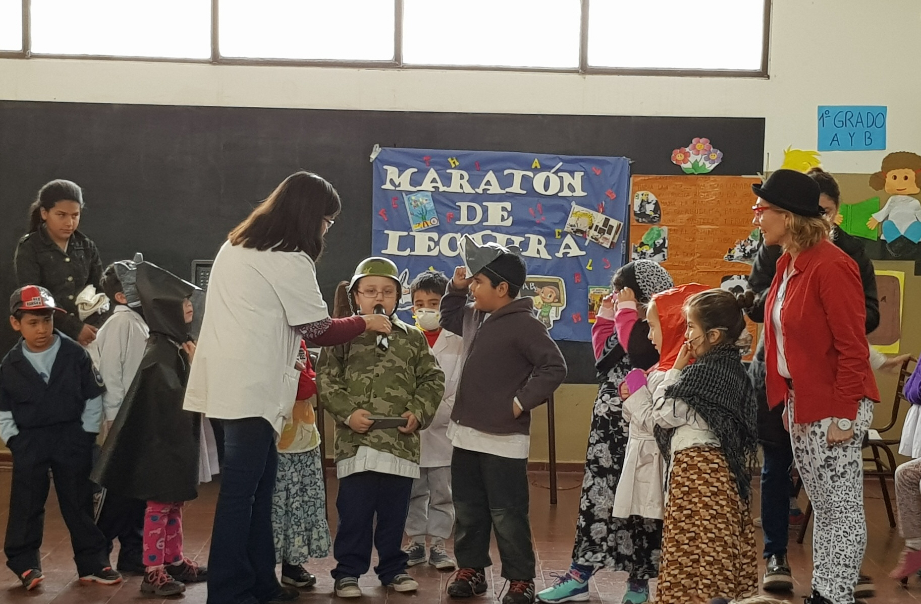 También trabajaron materiales de María Elena Walsh. El maratón se desarrolló en ambos turnos y el sitio elegido para las distintas actividades fue el SUM de la escuela. A los chicos se sumó toda la comunidad educativa de la escuela, las mamás y las abuelas lectoras. Hubo títeres, lecturas en voz alta y hasta pequeñas teatralizaciones que hicieron que más de 200 alumnos que asisten a la institución, se engancharan con la propuesta de dedicar un día entero a la lectura.