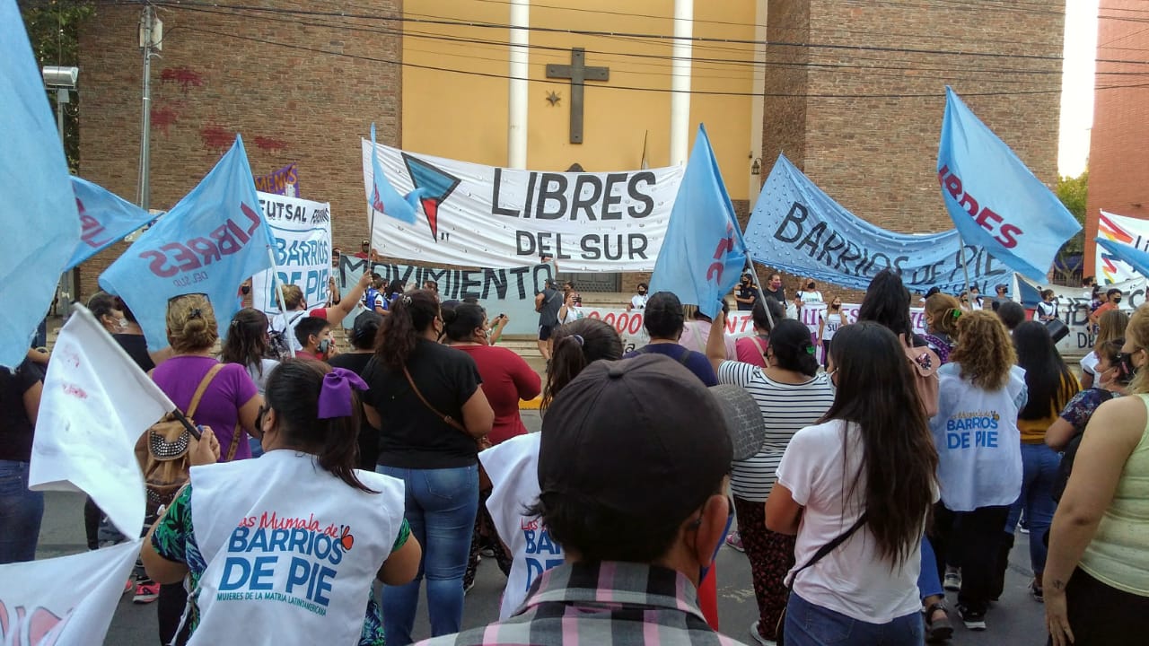 Mientras un sector ya había partido de la Plaza para realizar otra manifestación en la Legislatura, la mayoría continuó la manifestación frente a la Catedral, haciendose notar con enormes pancartas y el sonido de tambores y redoblantes.