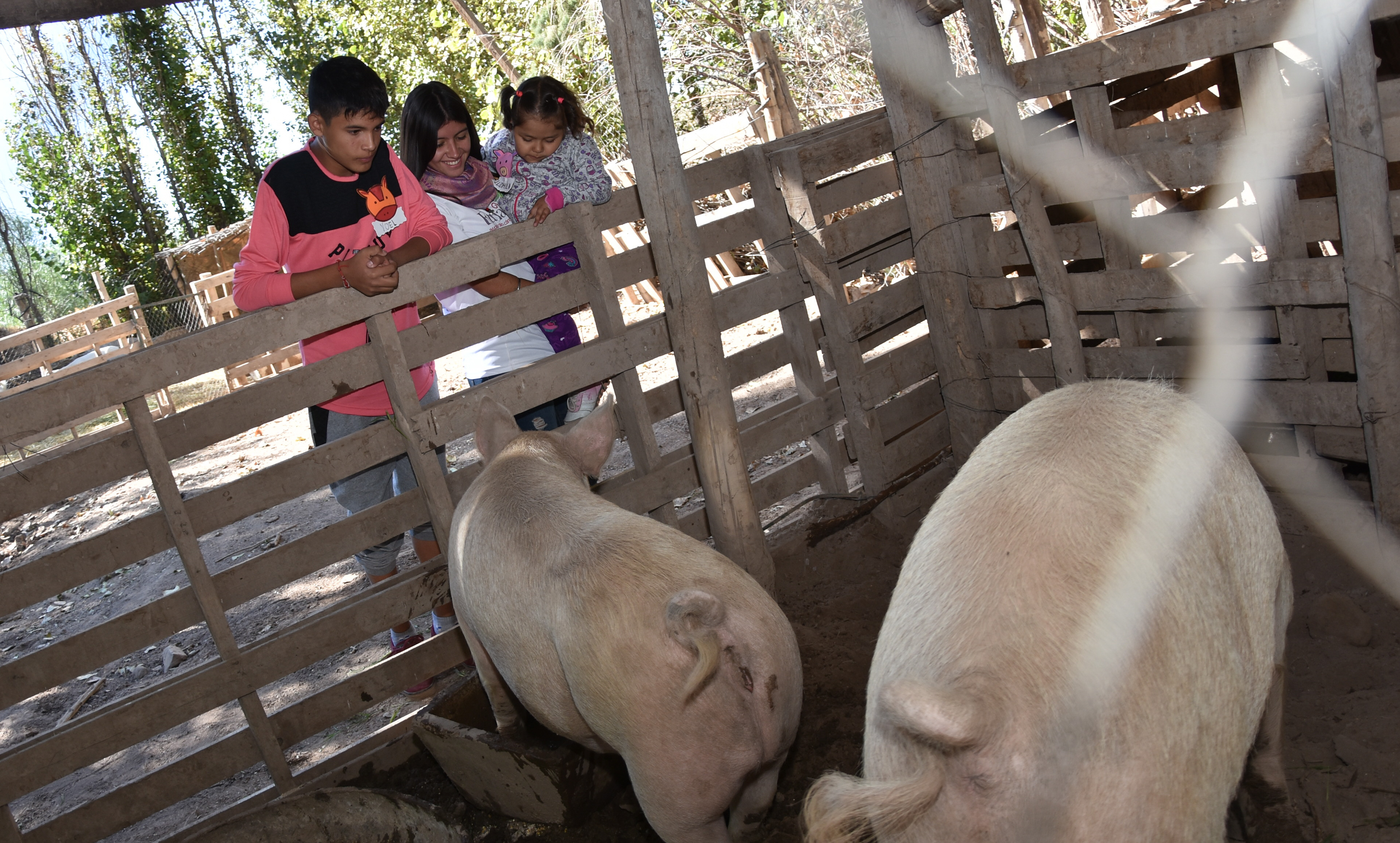 El recorrido comenzó con los chicos un poco tímidos. Pero con el paso de los minutos el entusiasmo y sobre todo la curiosidad los llevó a que empezaran a hacer una pregunta tras otra. Al llegar al lugar donde están los pavos, los chicos se aferraron con fuerza al alambrado. Preguntaron cuándo abre la cola el pavo, por qué es más grande que la pava y para qué hace ese “sonido tan extraño”. Las chicas que guiaron la visita respondieron cada una de las preguntas y los niños prestaron mucha atención.