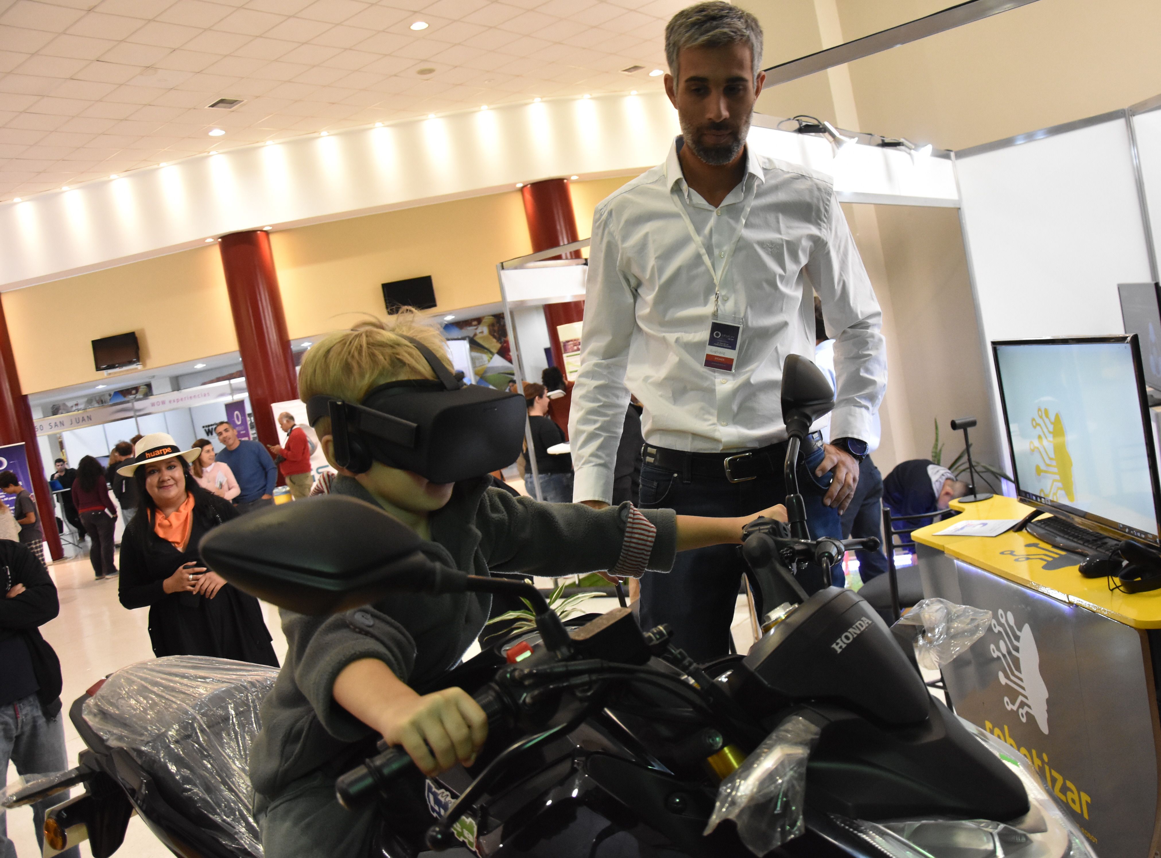 Entre los más visitados, estuvo el stand de robotizar, que ya logró su impacto durante la Fiesta del Sol, en el que combina robótica y realidad virtual. Acelerar sin miedo a una caída para recorrer el circuito del flamante autódromo El Villicum fue una tentación para grandes y chicos.