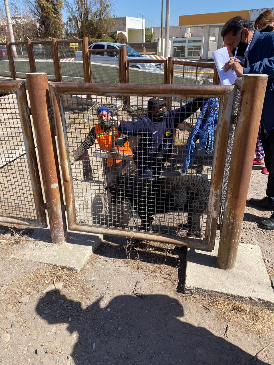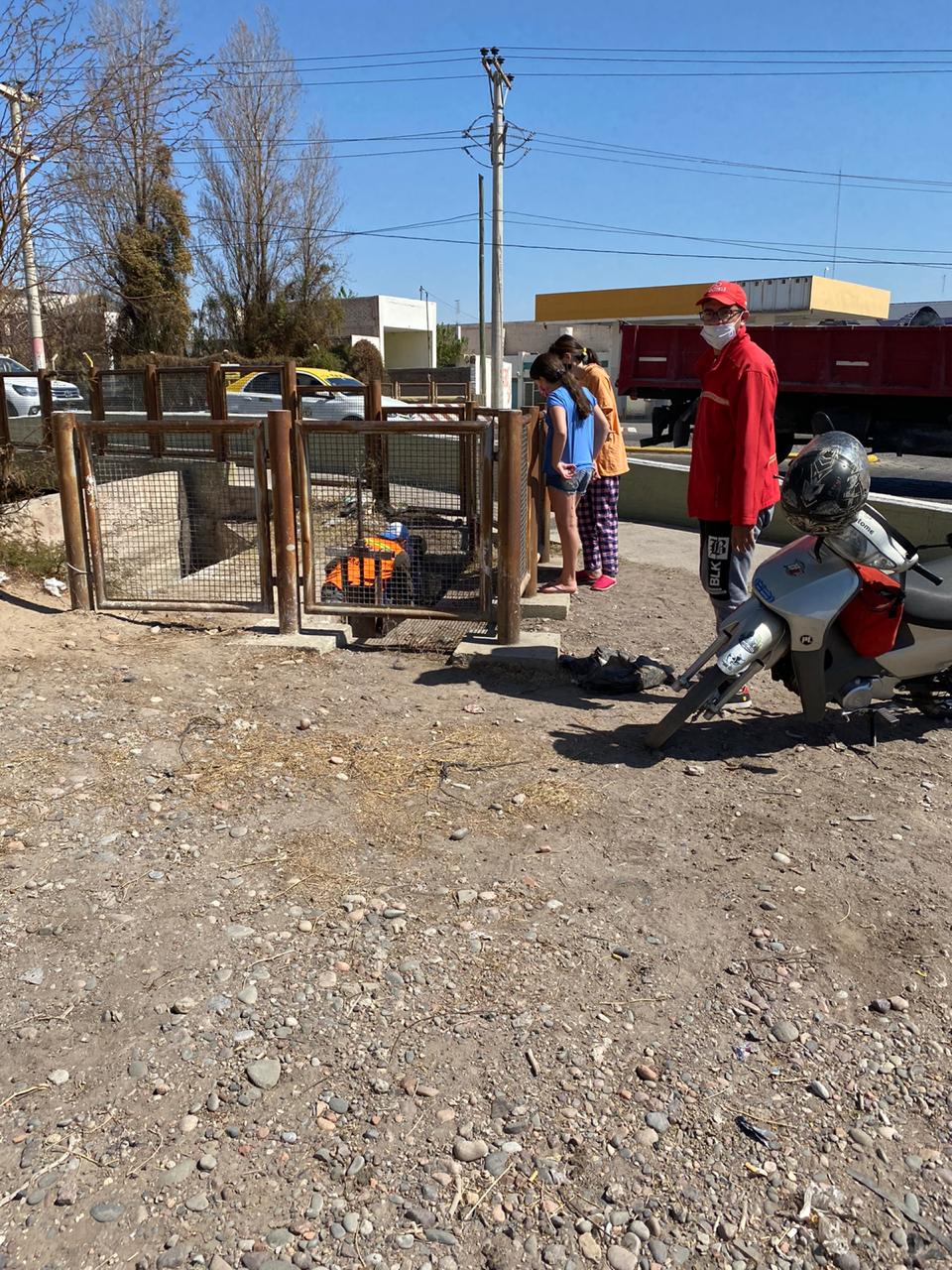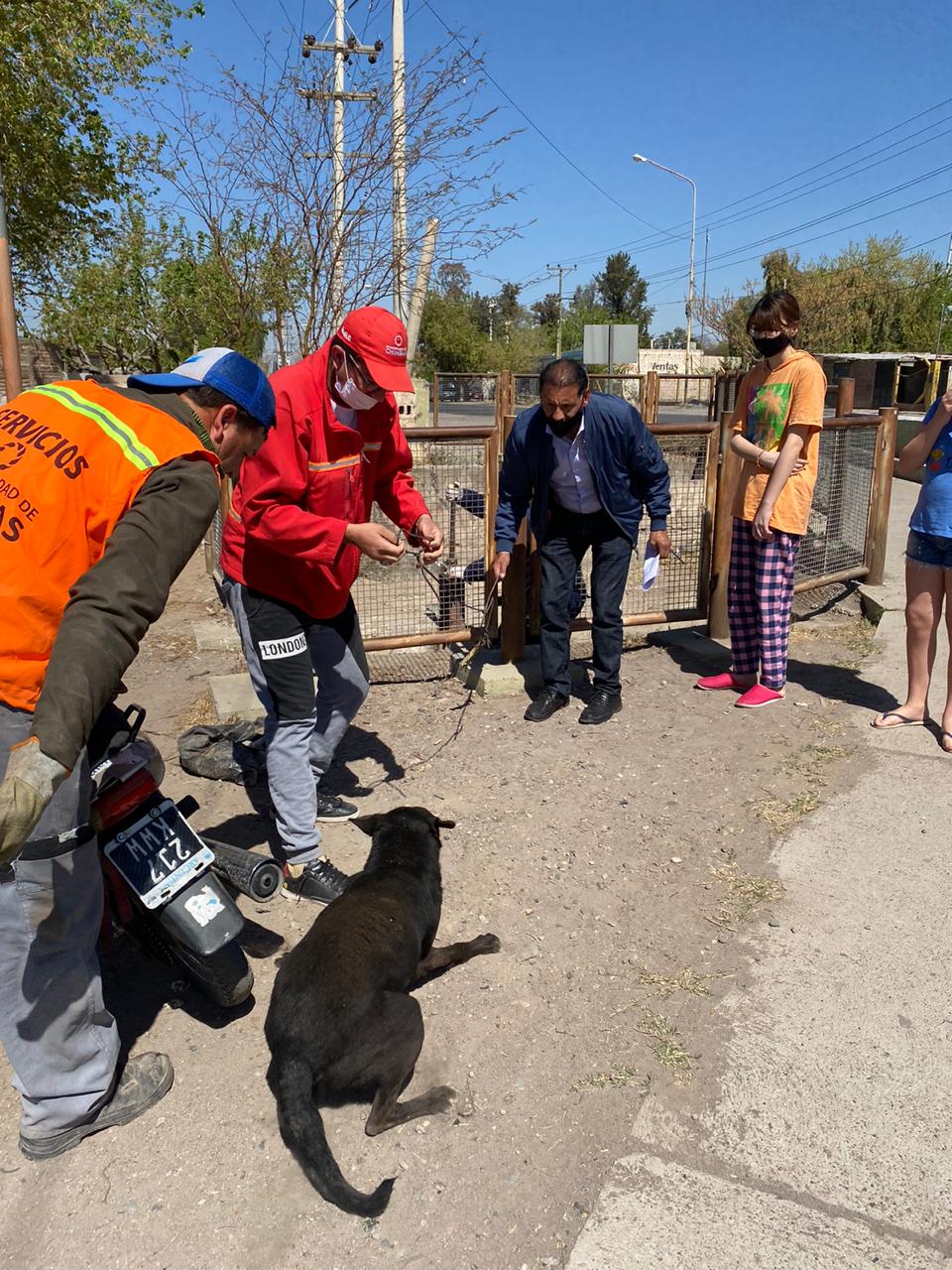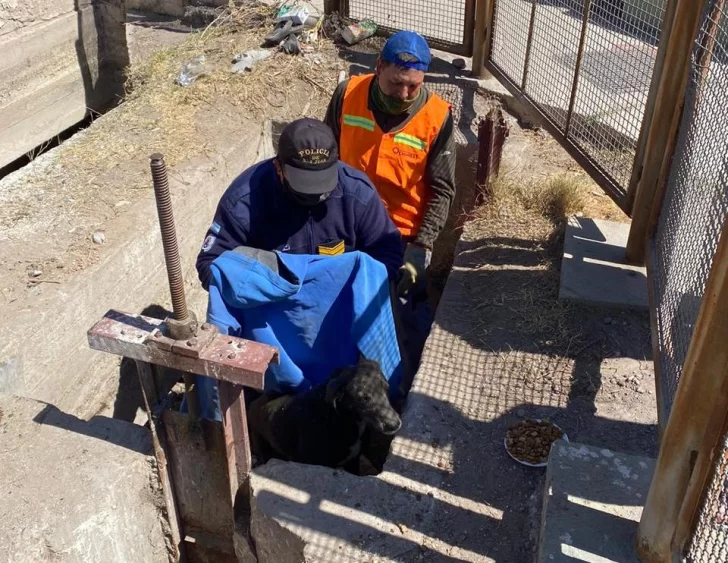 De inmediato, personal de la policía comunal de Chimbas, junto a un agente, un trabajador del municipio y dos vecinas, coordinaron esfuerzos para poder salvar al animal.