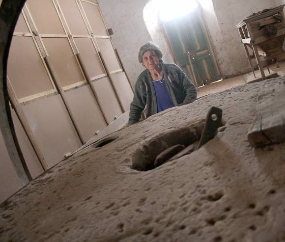 El camino sigue en el Molino de Reyes, uno de los molinos harineros más antiguos del departamento, que data de 1845, fue construido por Saturnino Reyes y se mantiene en manos de sus descendientes. Quien recibe a los turistas es María Mercedes Espinoza, viuda de Reyes. La mujer de 78 años saluda con una sonrisa y dice "pasen, pasen, yo atiendo a todos, no le hago mala cara a nadie. Me encanta que la gente venga a ver el molino". Ella es la encargada de describir detalladamente cómo funciona el gran aparato de madera que, si bien está listo para hacer harina desde hace casi un mes, no anda porque todavía no llegó el trigo. Cuenta cómo vivió las buenas épocas en las que la instalación funcionaba a toda marcha. "Ahora vinieron de la Municipalidad y lo arreglaron, le cambiaron el piso, repararon las maderas. Yo estoy muy feliz por verlo tan lindo y porque la gente lo puede conocer", dice la mujer de rostro surcado por arrugas pero con espíritu joven, antes de despedirse del grupo. Allí, la esencia del lugar se siente también a través del paladar: el contingente prueba mate cocido con sopaipillas y las tradicionales tortitas jachalleras.