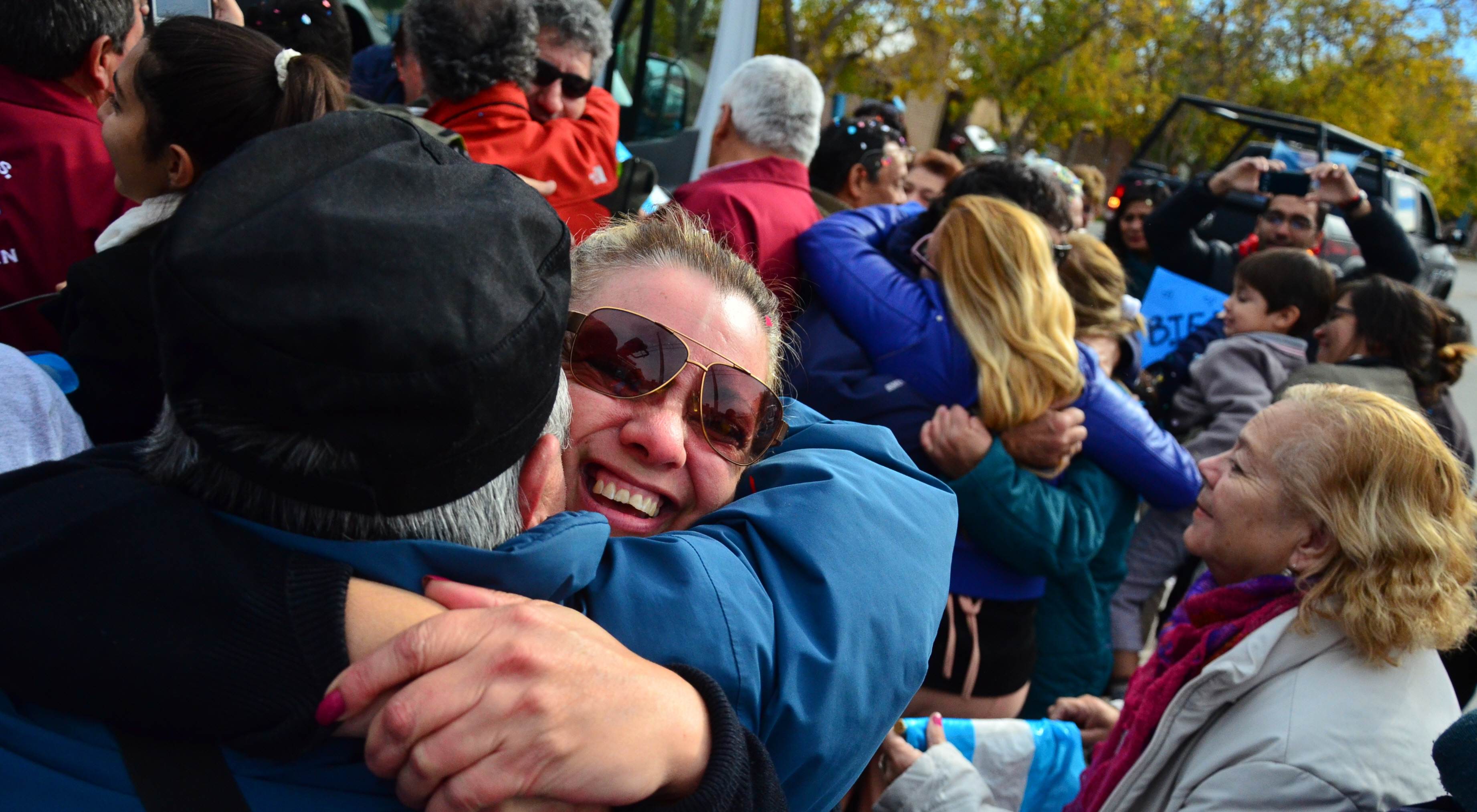 Los familiares y amigos recibieron a los viajeros con aplausos, carteles con frases de aliento y hasta papel picado. Luego los acompañaron durante toda la caravana sin dejar de hacer sonar las bocinas de sus vehículos.