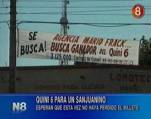 San Juan, 12 de mayo.- Un sanjuanino resultó ganador de 2 millones de pesos, al acertar los números del Quini 6, en el sorteo 1835 denominado "La Segunda", según confirmó Guillermo Ruiz, titular de la Caja de Acción Social.