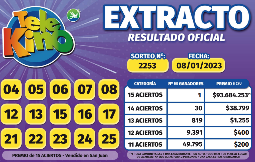 Según indicaron desde la Caja de Acción Social de San Juan los números ganadores fueron: 04, 05, 06, 07, 08, 12, 13, 15, 16, 17, 21, 22, 23, 24 y 25.