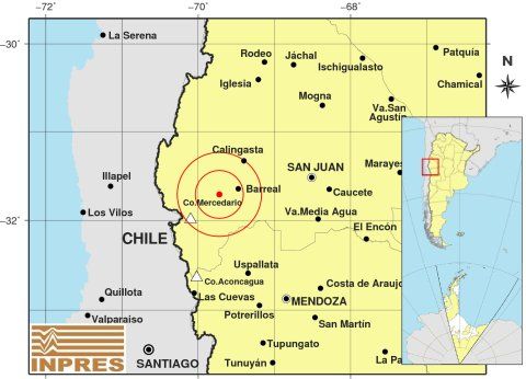 El epicentro se ubicó 117 kilómetros al Oeste de San Juan y 25 kilómetros al Oeste de Barreal.