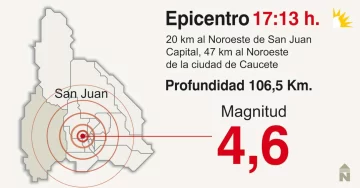 San Juan.- A las 17:13 un sismo de importantes magnitudes sacudió la provincia. Lo hizo con una magnitud de 4,6 grados y con una intensidad en la escala Mercalli Modificada de grado III (tres), en la ciudad de San Juan y en las zonas cercanas al epicentro.