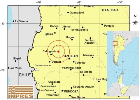 El epicentro del movimiento fue a 37 kilómetros al este de Calingasta y a 60 kilómetros al noroeste de la Ciudad de San Juan. Tuvo una profundidad de 149 kilómetros.