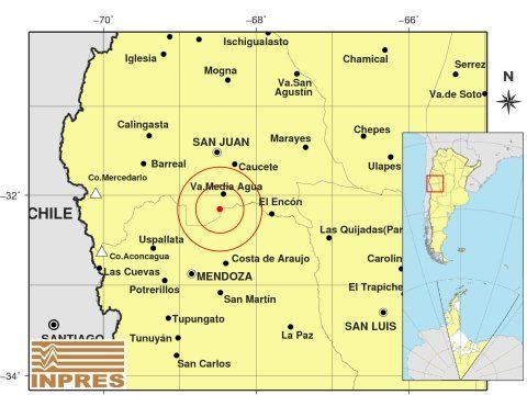 El epicentro se ubicó 20 kilómetros al Sur de Villa Media Agua, en Sarmiento.