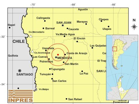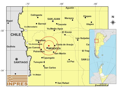 El sismo se produjo a la 1:57, 14 kilómetros al Noreste de Mendoza y 141 kilómetros al Sur de San Juan, a una profundidad de 13 kilómetros.