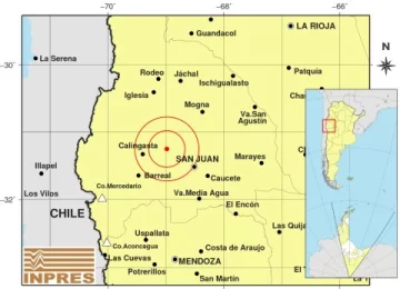 El epicentro fue marcado 35 kilómetros al Sudoeste de la Ciudad de San Juan y 52 kilómetros al Noroeste de Media Agua.