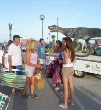 Los lobos marinos marplatenses tienen competencia por estos días. Es que el Frenguellisaurus Ischigualastensis, una de las réplicas de los dinosaurios que habitaron suelo sanjuanino, acapara la atención de los turistas que visitan la Costa Atlántica.