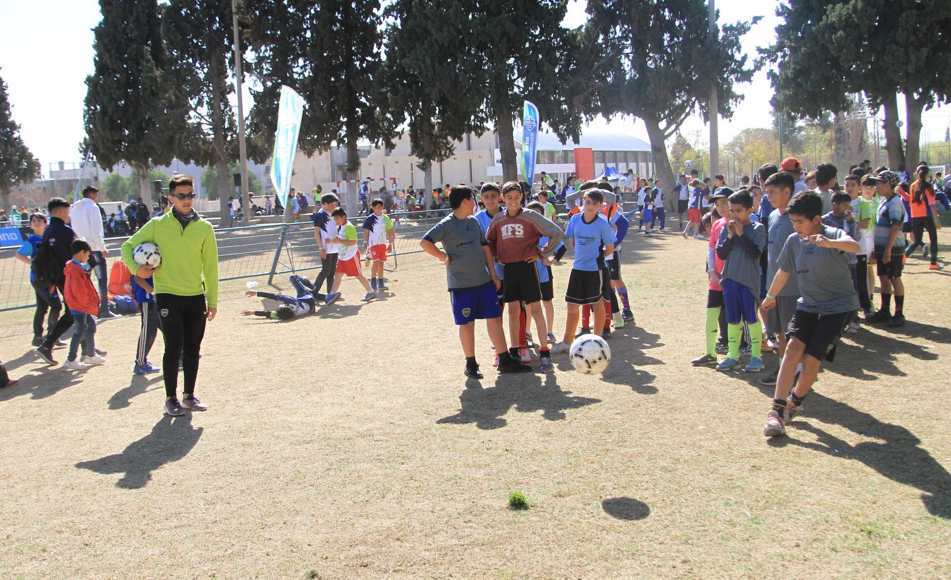 No quedó un rincón vacío. Las diferentes canchas de El Palomar estuvieron ocupadas durante horas y los niños hasta usaron las calles internas del complejo para hacer deporte. Y el entusiasmo fue tal que hasta jugaron a la balitas. Así, como si estuvieran en un universo paralelo, en el que los problemas no existieron y en el que sólo importó patear una pelota o pegarle a una bocha con un palo, más de 3.500 chicos de diferentes departamentos fueron protagonistas del encuentro del programa Líderes Barriales, organizado por la Secretaría de Deportes con fines recreativos. De esta jornada deportiva participaron además los chicos de algunas Escuelas de Iniciación Deportiva y algunos clubes.