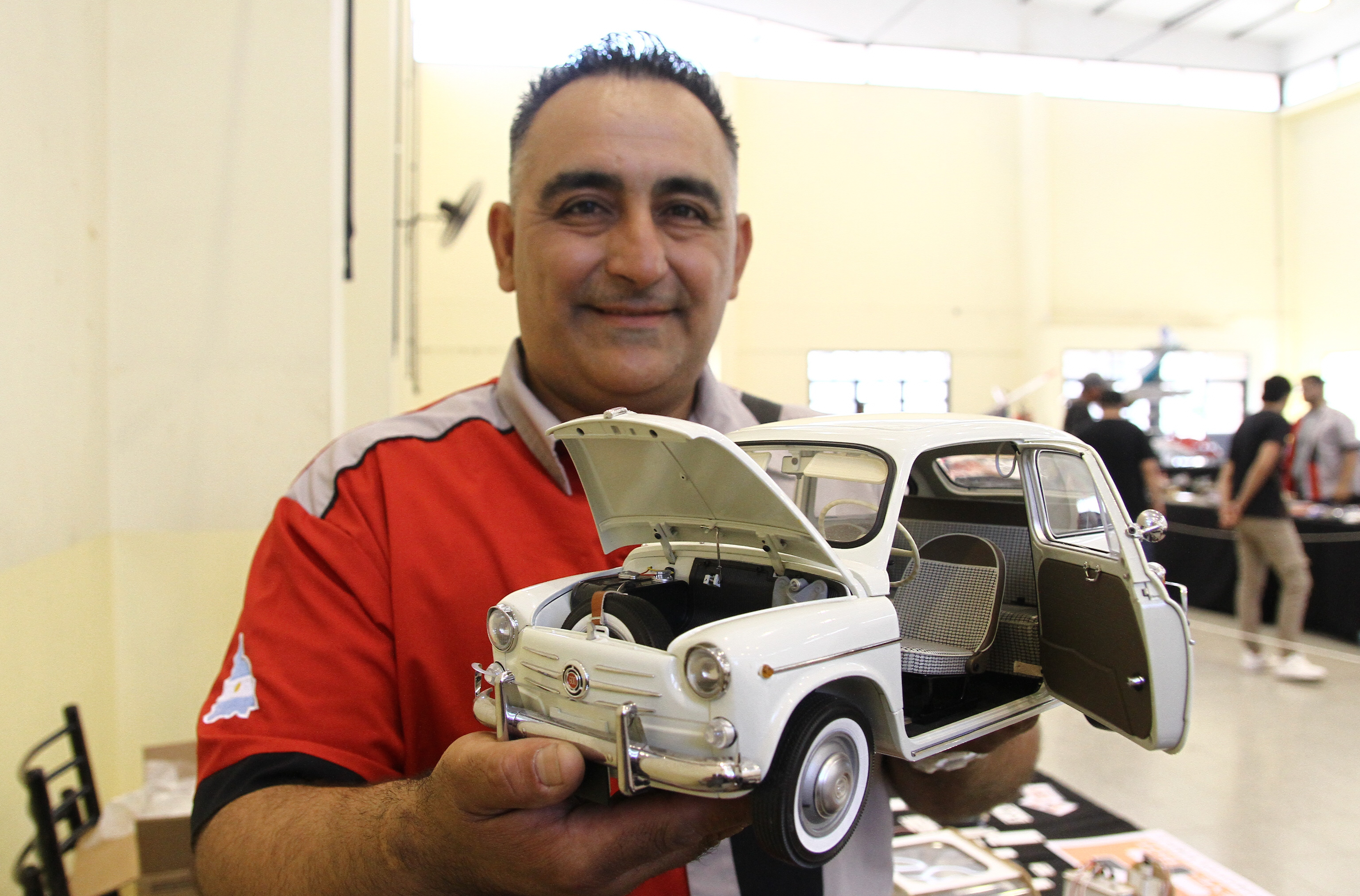 Raúl Aciar tuvo en exposición varios autos, sin embargo un Fiat 600 modelo "64 fue la joyita de su stand. El hombre contó que está formado por 100 piezas y que lo tuvo que armar con ayuda.