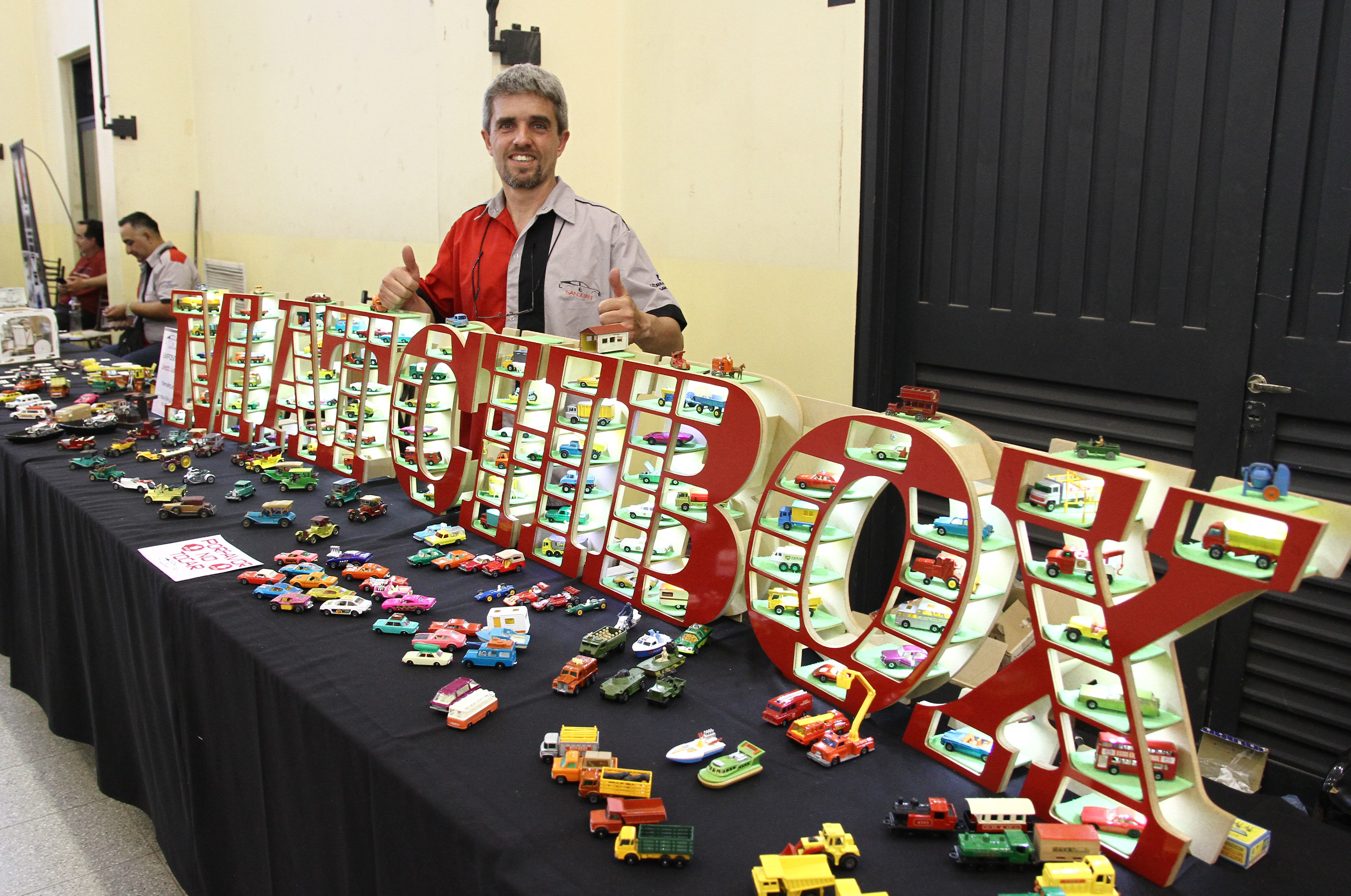 Gerardo Guardia colecciona autos desde que tiene uso de razón. Para esta muestra construyó una repisa con las letras que forman la marca Matchbox y la llenó de autitos de una colección del año 1970.