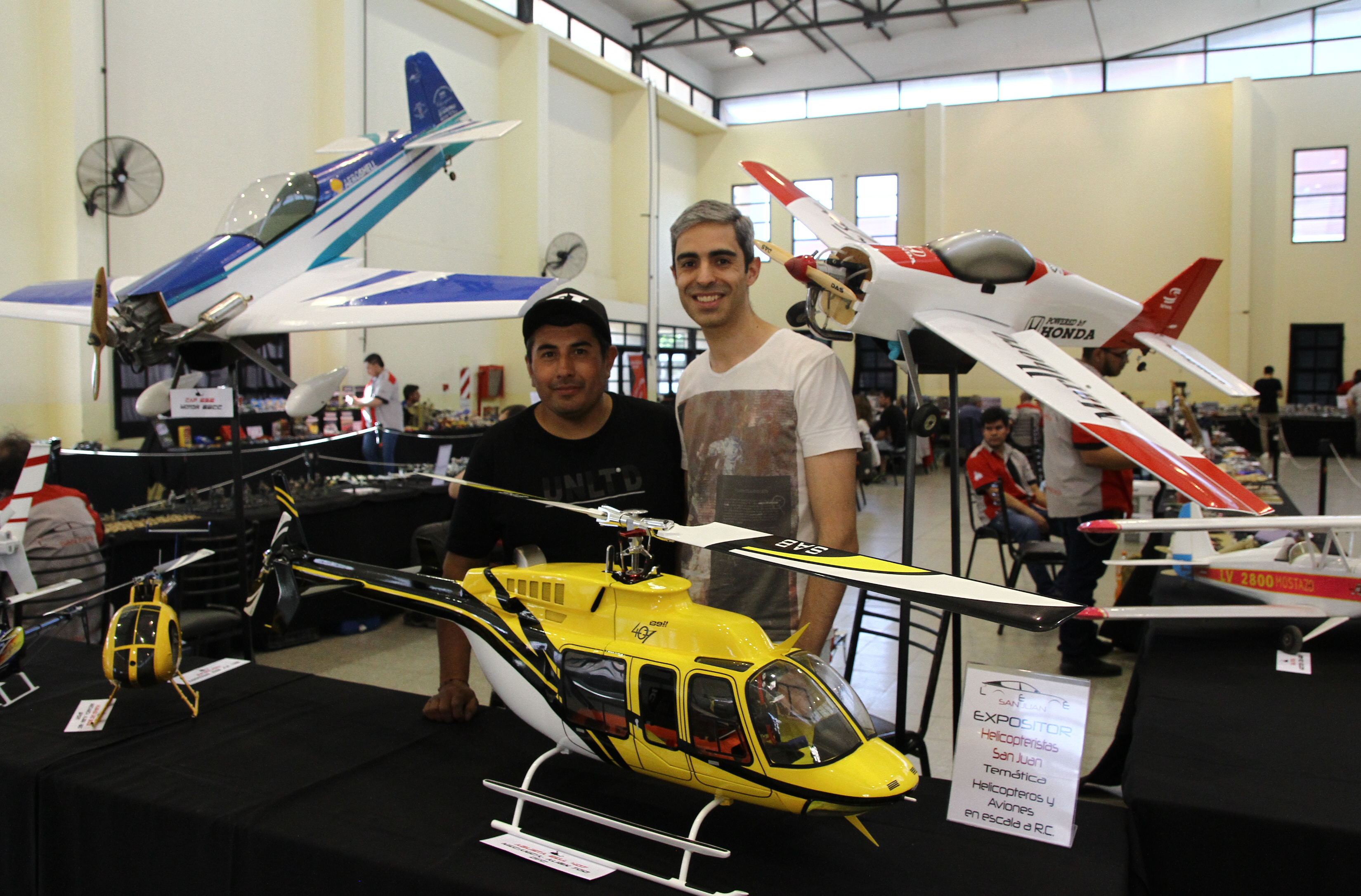 Martín Gil y Juan Tello son los dueños de los helicópteros y algunos aviones que fueron expuestos en la jornada de ayer. Este stand fue uno de los más admirados por el público de todas las edades.