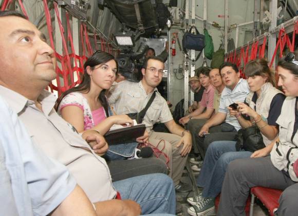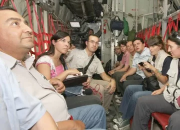 El entusiasmo de mirar el paisaje a través de las ventanillas desapareció, para la mayoría, a los 15 minutos de vuelo. Cada movimiento de la nave acentuó las ganas de vomitar de los civiles. Y los dejó hasta sin ganas de hablar. Elizondo se limitó a responder preguntas sólo con un movimiento de cabeza o una sonrisa. Todos se resistían a usar las bolsitas de plástico que, por las dudas, llevaban a mano. Un par no tuvo más opción que usarla. Vomitaron cuando el Hércules aterrizó nuevamente.