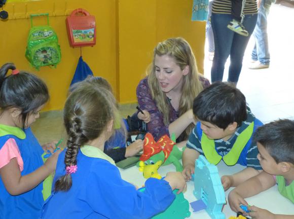 �Jimena Fernández, Reina Nacional del Sol, aprovechó una visita a su Jáchal natal para concretar una tarea solidaria. Visitó a los niños que concurren al Jardín Maternal dependiente del municipio, para compartir el día con ellos. Les llevó juguetes y golosinas. También jugó y pintó con todos.