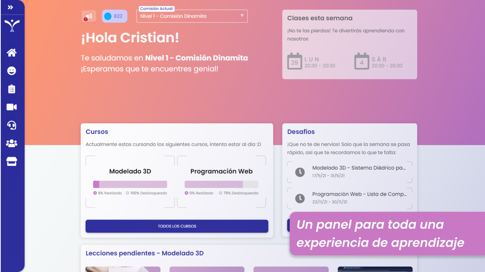 Cada carrera dura cuatro semestres, es decir unos dos años. Un chico que ingresó con 13 egresa con 15 años y puede hacer otra. A través de la página, los alumnos pueden acceder a sus horarios, a las lecciones pendientes, a sus cursos, a los desafíos y a los contenidos. Es todo muy didáctico. Además de aprender, los chicos hacen desafíos grupales e interactúan, y hasta hicieron juntadas por el feeling que van adquiriendo entre ellos, contaron.