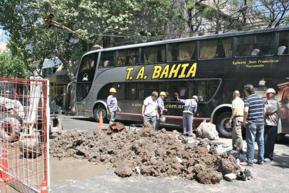 Durante todo el día feriado, los autos y colectivos que circulaban por calle Mendoza hacia el Sur, tenían que hacerlo a muy baja velocidad, por el estrecho pasaje que dejaba la abertura hecha justo en la intersección con Laprida. Mientras aceleraban los trabajos, los encargados de la obra esperaban poder terminar a la brevedad con la reparación del caño.