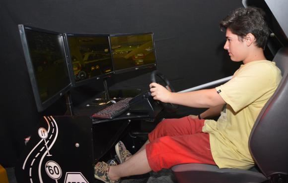 El entretenimiento también es la vedette en el stand de Tránsito y Transporte, aunque en este caso con una situación invertida. Los juegos están destinados a los adultos, pero los chicos también participan. Se toman fotos en la fotobox, usan el simulador de manejo y hasta intentan meter un gol mientras usan gafas que provocan la misma sensación que experimenta una persona que tiene 5 g de alcohol en sangre.