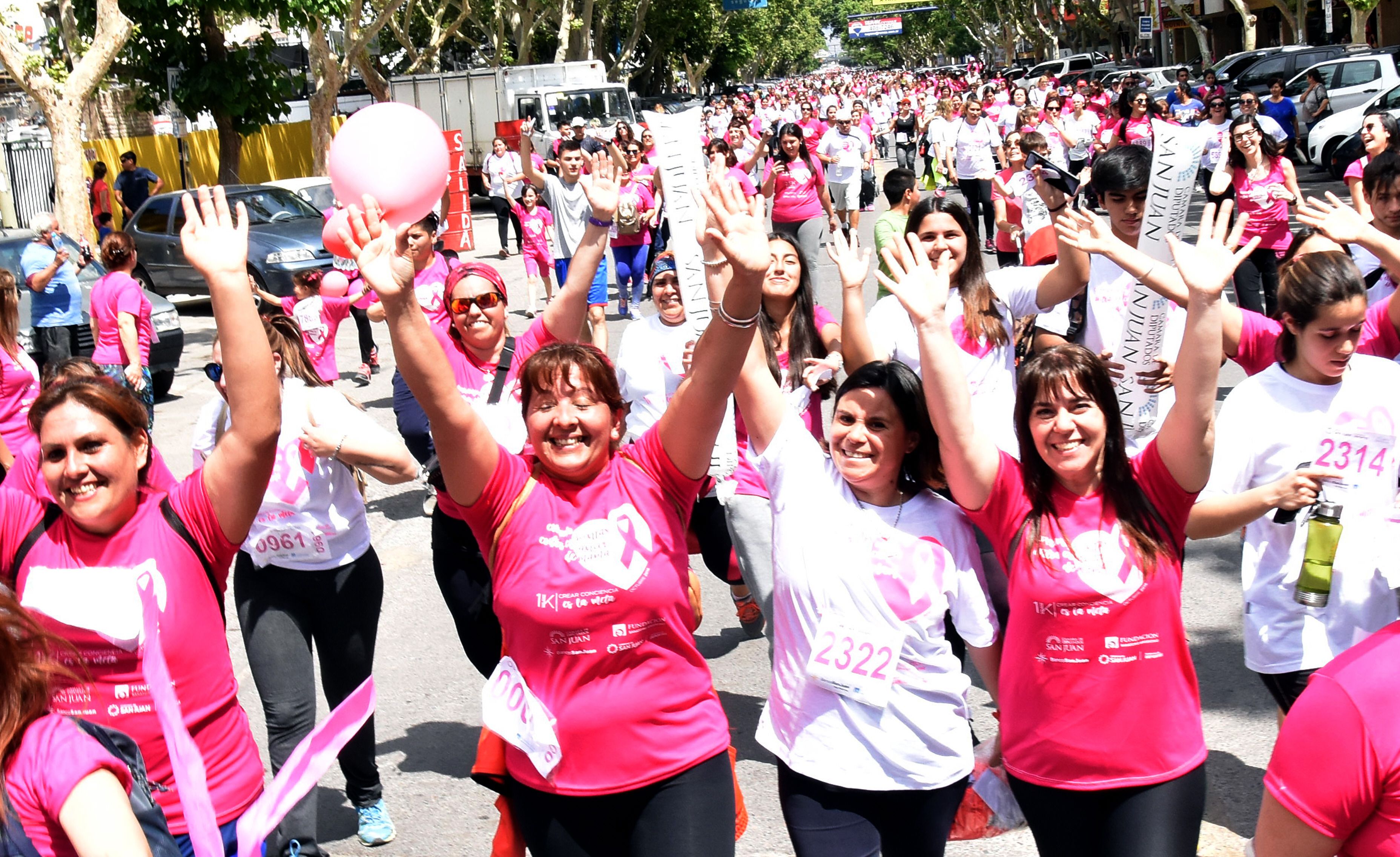 Desde hace tiempo, octubre es el mes que se destina en todo el país para crear conciencia sobre la prevención del cáncer de mama. En San Juan, cada vez hay más campañas y más creativas. Desde carreras, maratones, charlas, mateadas, videos con historias de vida, hasta clases de zumba sirven para que las mujeres aprendan a realizarse controles a modo de prevención. Ayer, la Cámara de Diputados organizó el tradicional encuentro llamado "Corramos juntas contra el cáncer de mama", y que convocó a más de 8.000 personas que atravesaron las calles céntricas luciendo remeras rosadas.