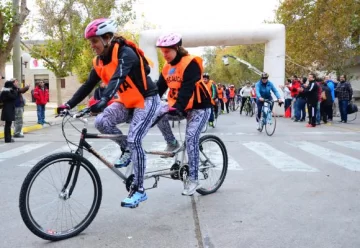 El frío no detuvo a los integrantes de la asociación Puertas Abiertas que ayer participaron de una bicicleteada solidaria para celebrara los 10 años de la institución. Muchos pedalearon en tándem, ya que eran ciegos. Salieron desde la Municipalidad de la Capital para llegar a Trinidad.