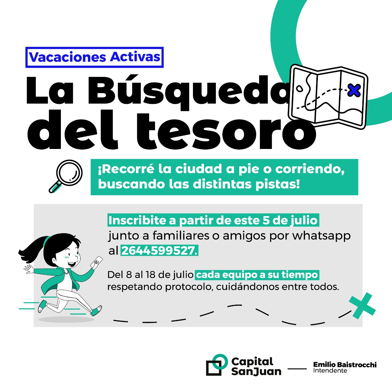 Durante las vacaciones de invierno, la Municipalidad de Capital organiza el juego “Búsqueda del Tesoro”, con pistas que serán distribuidas en distintos puntos de la Ciudad. Se trata de una actividad para ejercitarse y disfrutar en familia siguiendo los protocolos sanitarios en medio de la pandemia.