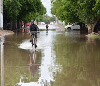 El agua se acumula allí porque la calle de asfalto es como un pozo y los barrios que están hacia el Este no tienen cunetas ni desagote.