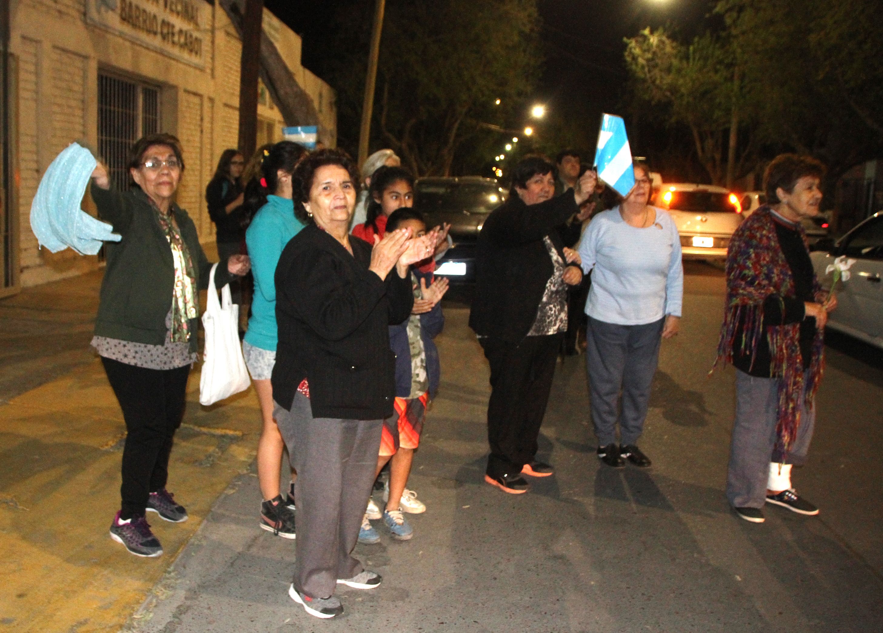 Los bocinazos fueron el sonido que más fuerte se escuchó junto a la imagen de la Inmaculada Concepción, sin embargo en varios puntos la gente aplaudió con fuerza, gritó y hasta cantó algunas canciones religiosas. La imagen de la Virgen fue bienvenida en todos los barrios. Incluso, en algunas capillas (que pertenecen a esta parroquia) fue esperada con campanazos y mucha gente que la acarició.