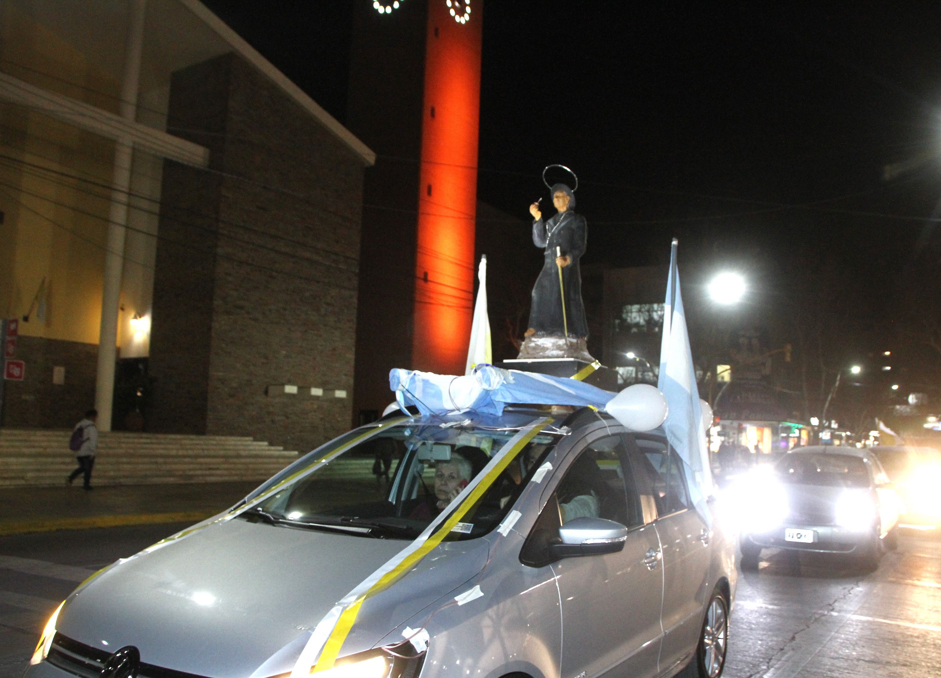 Acompañada. La imagen de Cura Brochero participó de la caravana, que llegó hasta la plaza 25 de Mayo.