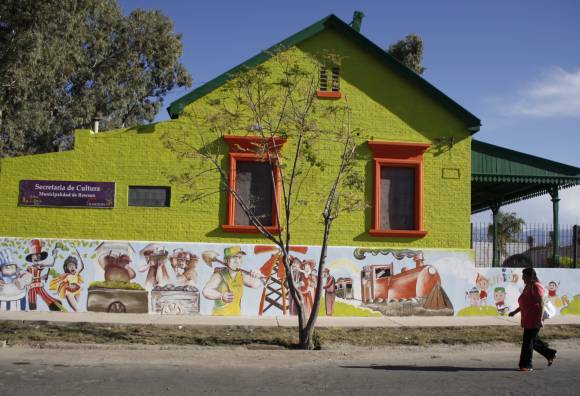No es la primera vez que en la provincia una construcción que perteneció al antiguo ferrocarril se convierte en un centro artístico. Pero sin lugar a dudas, la que acaban de inaugurar en Rawson, se lleva el primer puesto por lo llamativo de su decoración. Es que el verde intenso de sus paredes contrasta con el resto del paisaje. Sin embargo, lo que más atrae son los murales que diseñaron en la parte inferior de la casona. Es que lo que buscan desde la comuna rawsina es que este sitio, al que bautizaron como Casa de la Cultura, se convierta en un espacio donde grandes y chicos puedan dejar volar la imaginación. Ayer se llevó a cabo la inauguración oficial.
