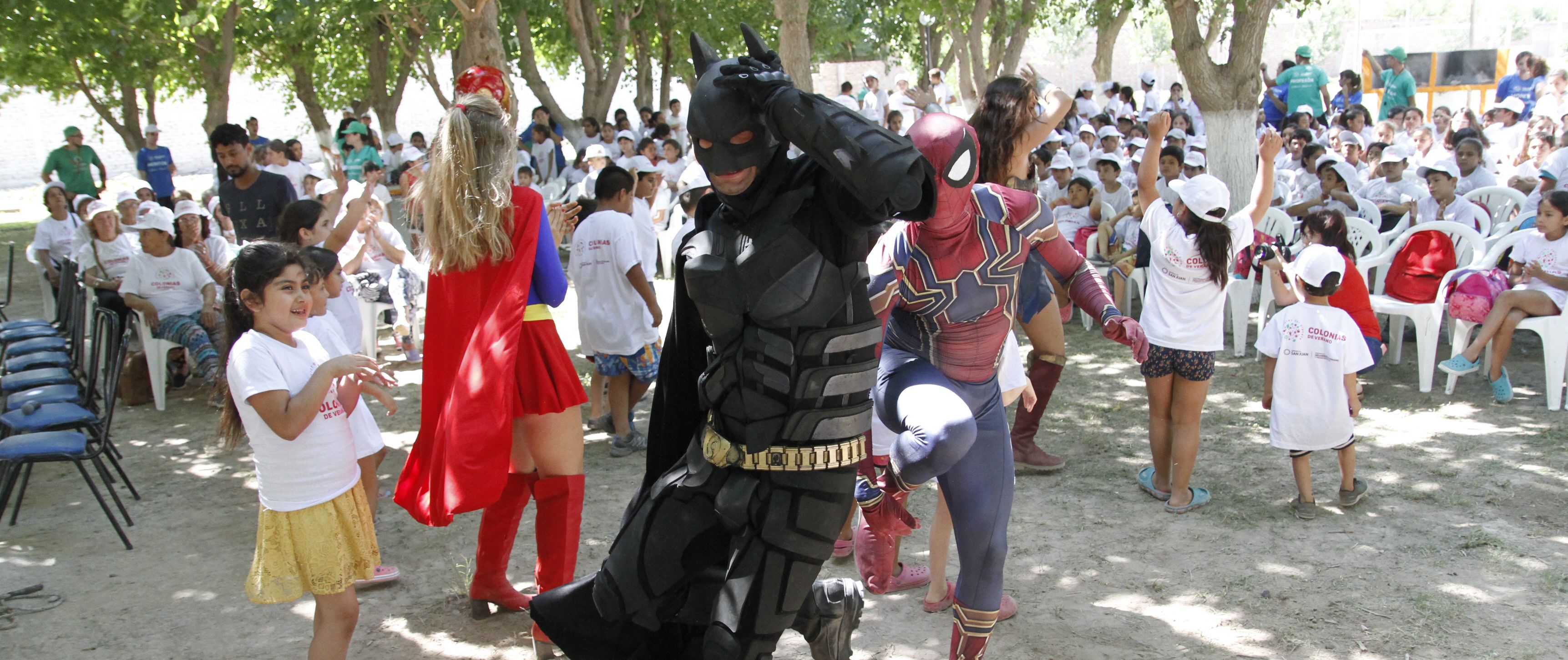 Aparecieron de repente y sin anuncio previo, lo que sorprendió especialmente a los chicos. Fueron Batman, el Hombre Araña, el Capitán América, Iron Man, la Súper Chica y la Mujer Maravilla, los superhéroes que emprendieron la misión de entretener a los presentes en la previa del acto oficial. Y cumplieron con su deber. No sólo bailaron diferentes coreografías al ritmo del reggaetón y de la cumbia, sino que también hicieron algunas piruetas para demostrar su agilidad y buen estado físico. Frente a este espectáculo recibieron la ovación del público, pero especialmente de las abuelas de más de 60 años que también participarán de la colonia. Ellas aplaudieron cada movimiento de los superhéroes. También fueron las primeras en abandonar sus asientos para acompañarlos en el baile. Es que tanto Batman como el Hombre Araña sacaron a bailar a chicos y grandes para que los acompañaran en el cierre de su presentación. Ese momento llegó, pero los superhéroes no pudieron retirarse. Los presentes los rodearon para sacarse fotos con ellos.