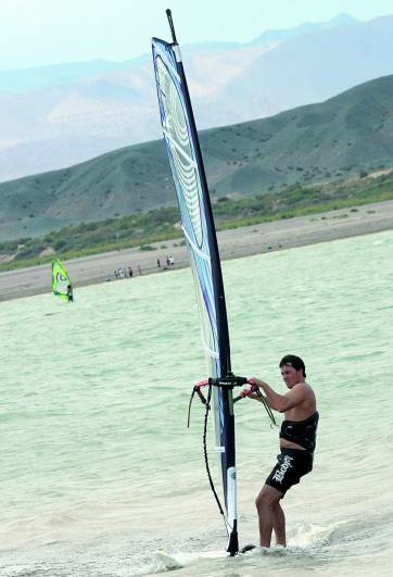 En Puerto de Palos, en un reparo que da el parador y a pocos metros de la playa y el agua del dique, hay una carpa junto a dos lamarales. Sobre la tierra aparece un círculo con piedras pintadas, como mandalas, hay una mesa para las tareas plásticas y cintas de colores y atrapa sueños colgados de un lamaral. Todos fueron hechos y pintados por los chicos, en sus tareas y mientras sus papás trataban de domar los vientos con sus tablas y velas.
