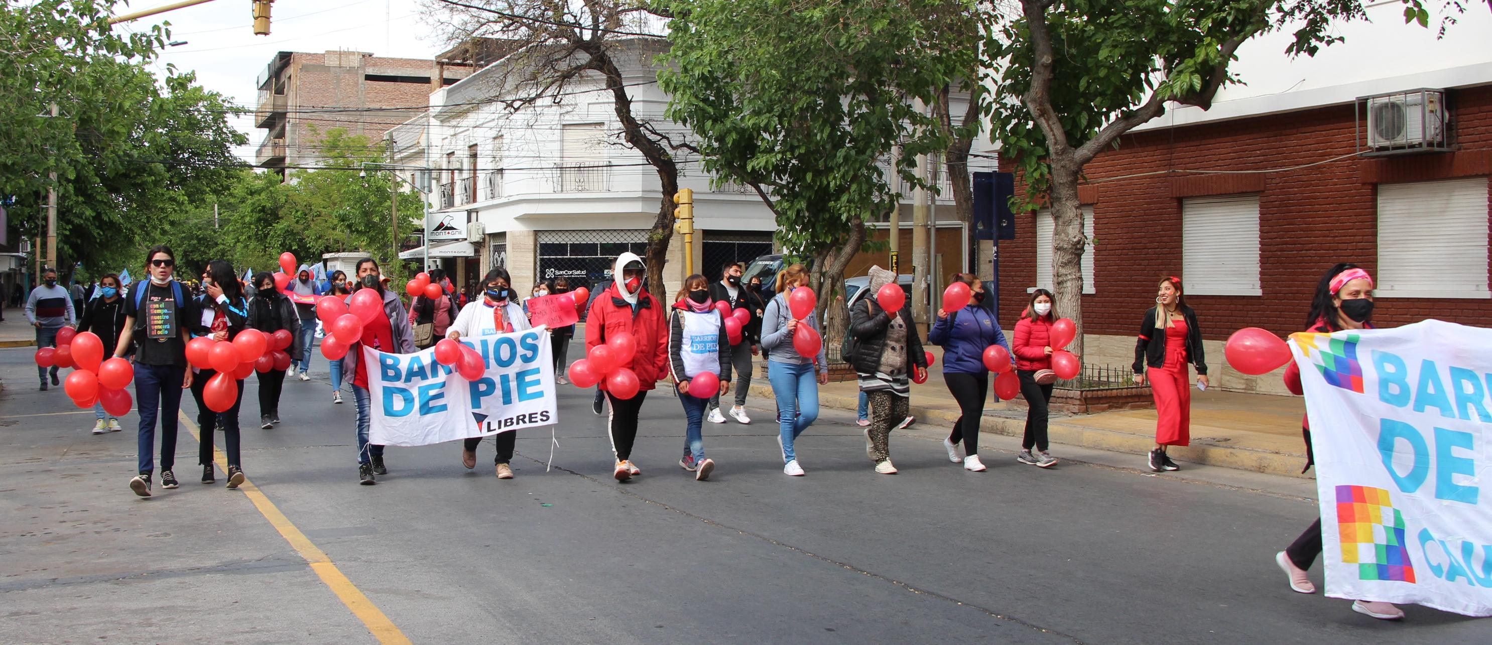 La manifestación fue organizada por la agrupación Mumala San Juan y contó la participación de las delegaciones "Barrios de Pie" de varios departamentos y de comedores infantiles.