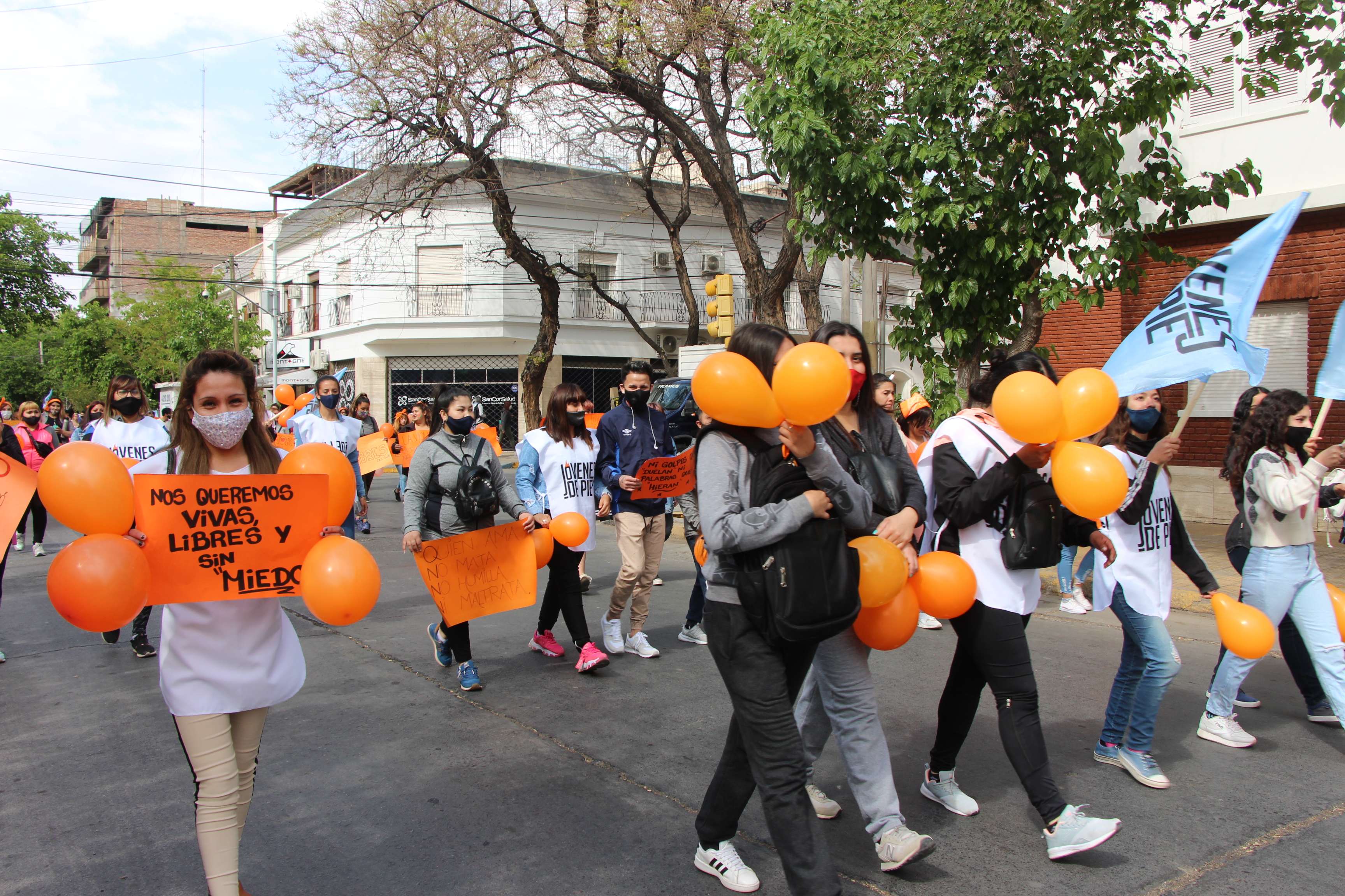 La tranquila mañana del viernes feriado se vio convulsionada en la Ciudad por una colorida marcha en reclamo por los derechos de las personas que integran el grupo LGBTIQ+ y de las mujeres.