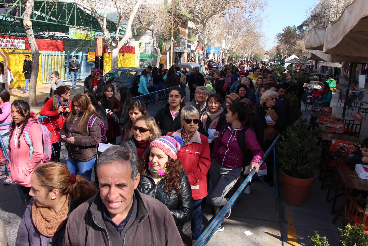 Durante el mediodía, en esa Avenida, entre Tucumán y General Acha, se podía ver más de cuadra de cola formada por personas que ya habían pagado sus tickets en las carpas de venta y esperaban su pedido. La mayoría de ellos abandonaba el lugar con al menos 5 cajas apiladas.