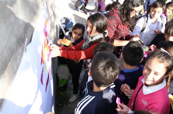 Luego, los estudiantes secundarios proyectaron imágenes con conceptos básicos de algunos movimientos del arte. Tras esas explicaciones, abrieron las puertas del SUM y en las paredes y pisos del patio esperaban cartulinas blancas. Ahí los niños aprovecharon para pintar con témperas y fibras, hacer collage e incluso armar poemas con una bolsa llena de palabras. En el final, todos compartieron un chocolate.