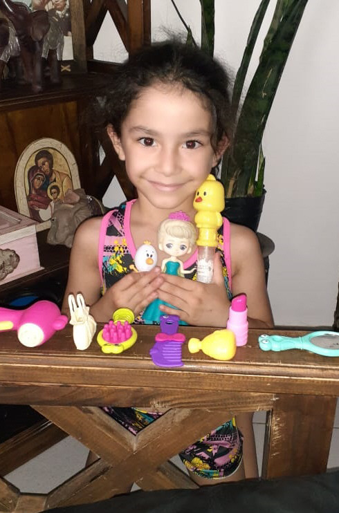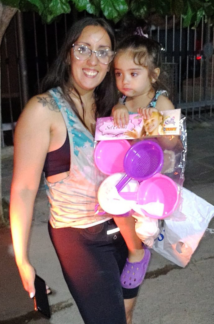 Ana Luján Cimino , de Capital, estuvo feliz con sus muñecas y su set de belleza.