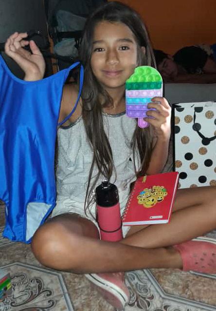 Yazmín Poblete , una pocitana de 9 años, recibió una malla y un Pop-it, entre otros obsequios.