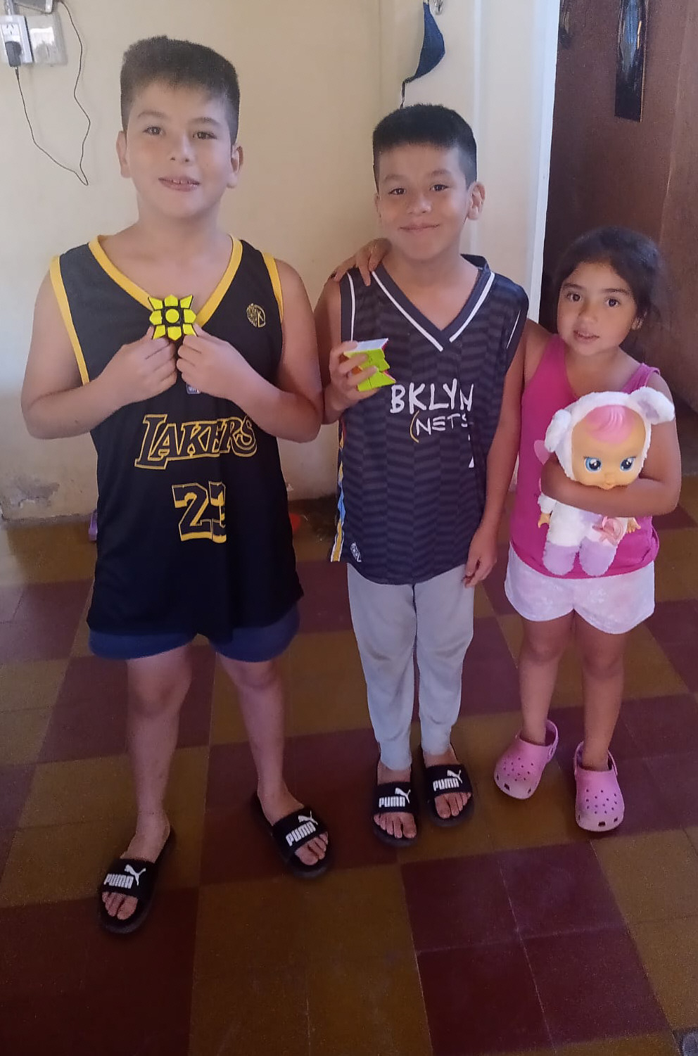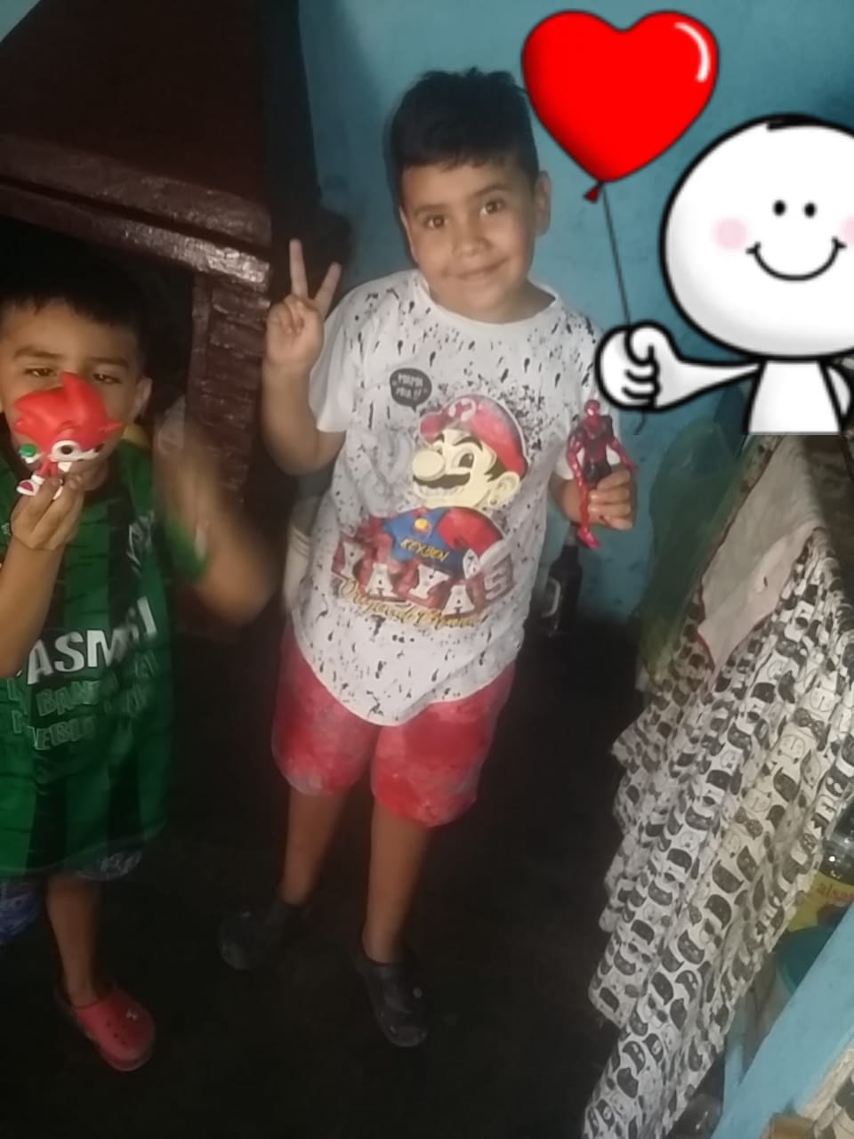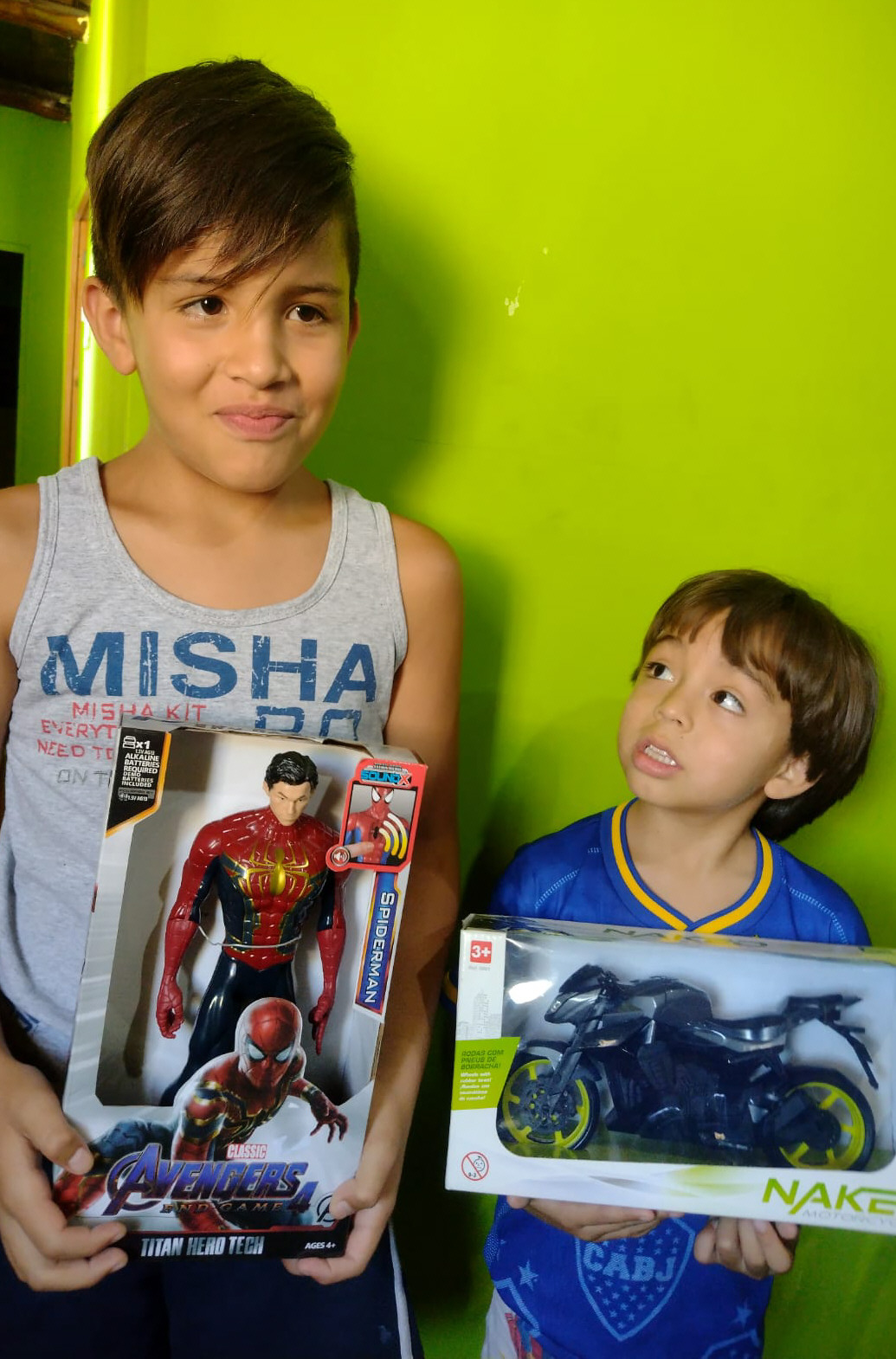 Lautaro y Alejo Jofré , de Rawson, recibieron un muñeco de Spiderman y una moto.