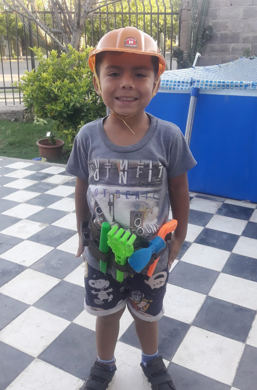 Milton, un nene de 5 años de Rawson, estuvo feliz estrenando su juego de herramientas.