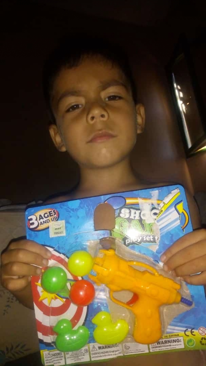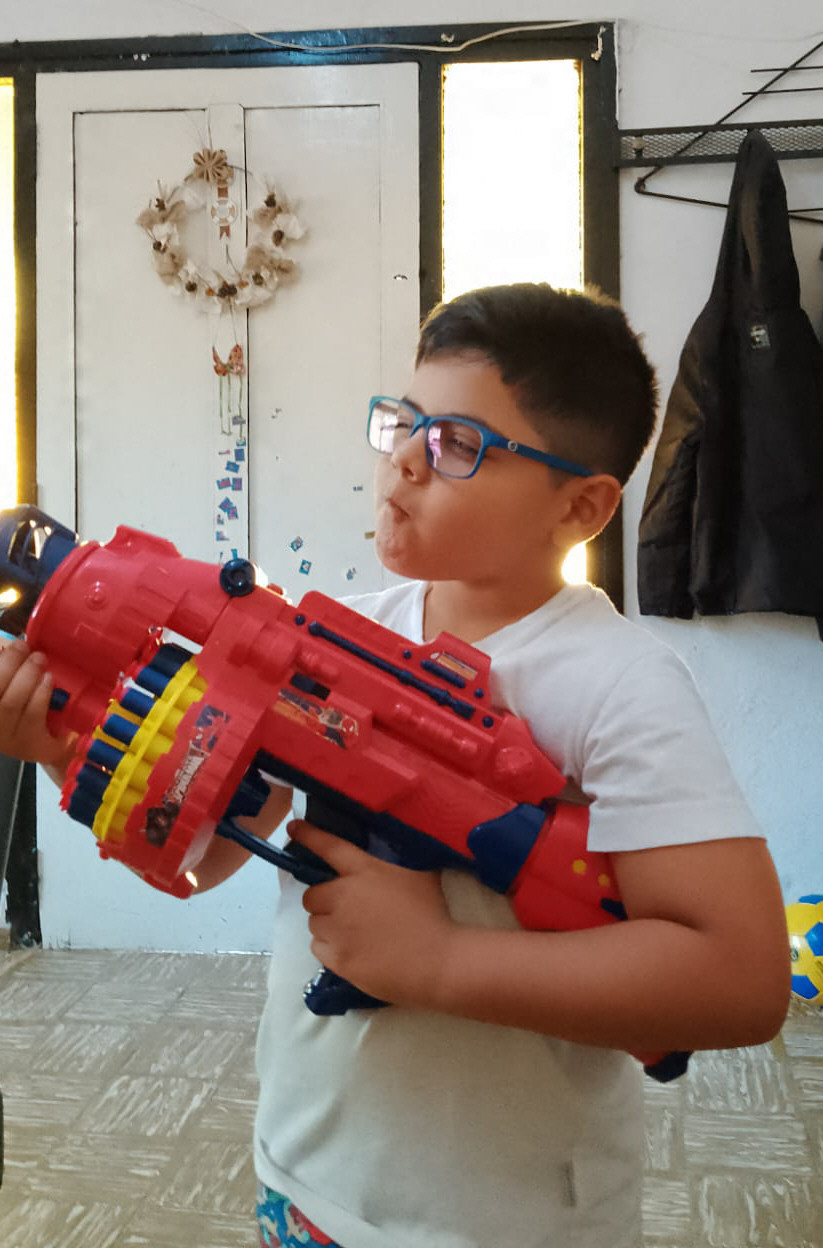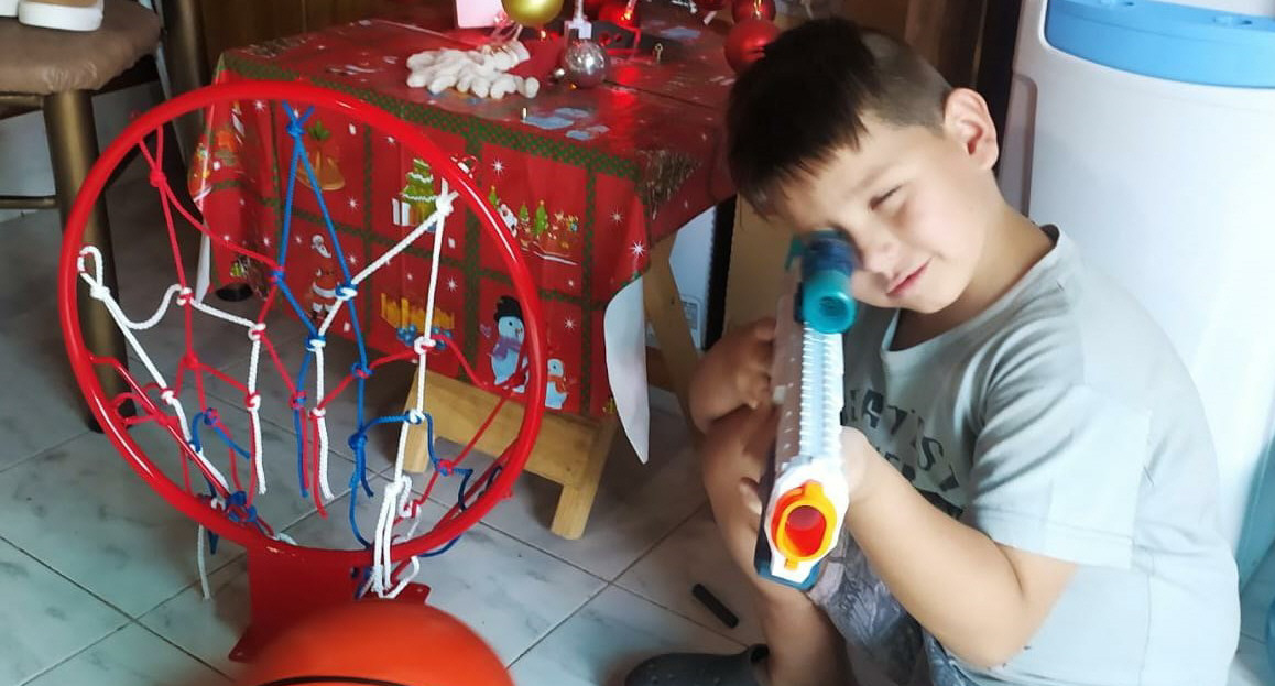 Sergio Medina Vargas tiene 6 años. Amante de los deportes y las armas, el niño recibió un aro de básquet, una pelota y una pistola. Jugó desde primera hora de la mañana.