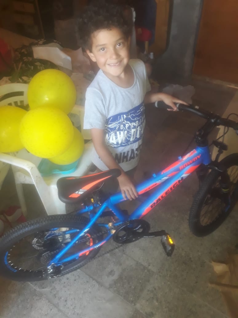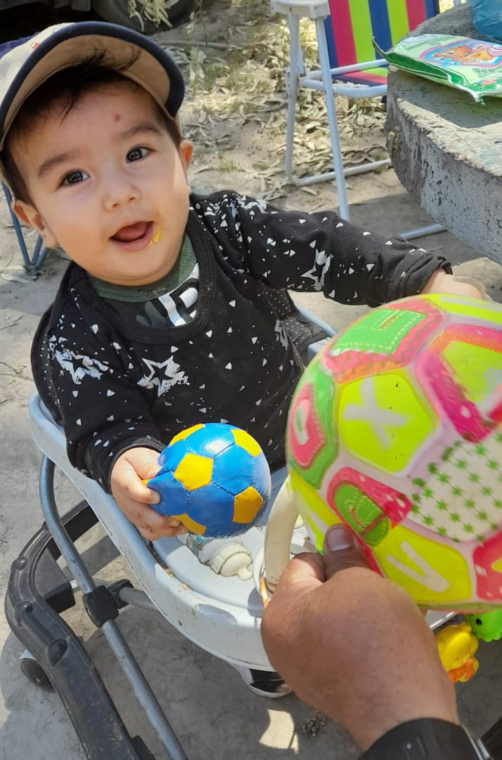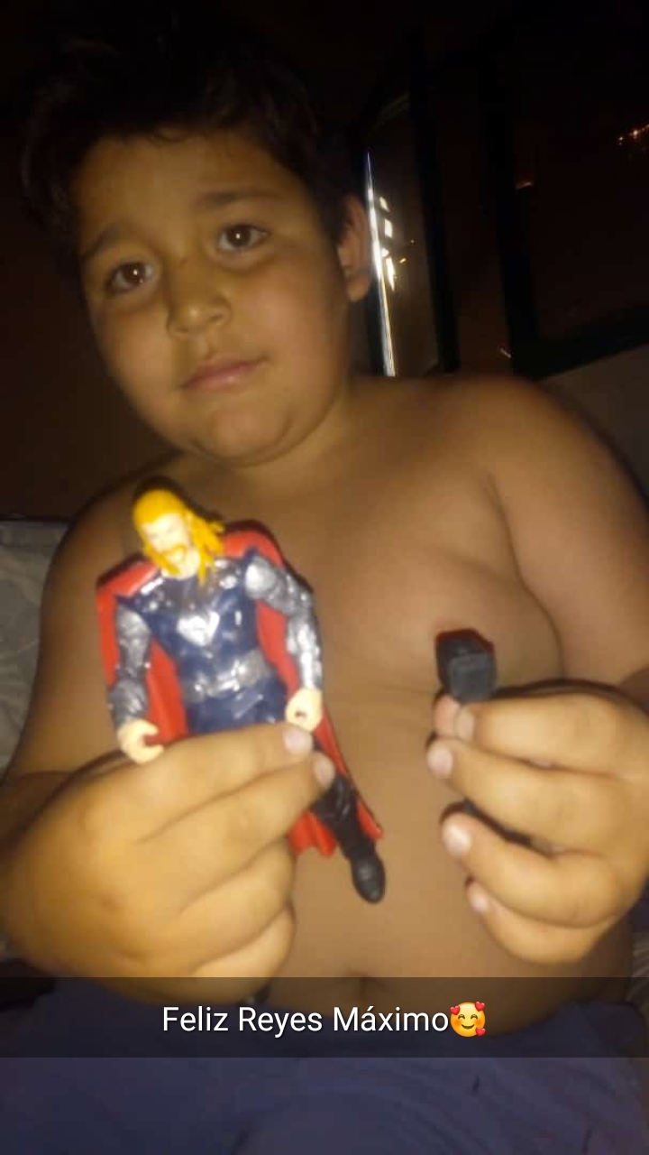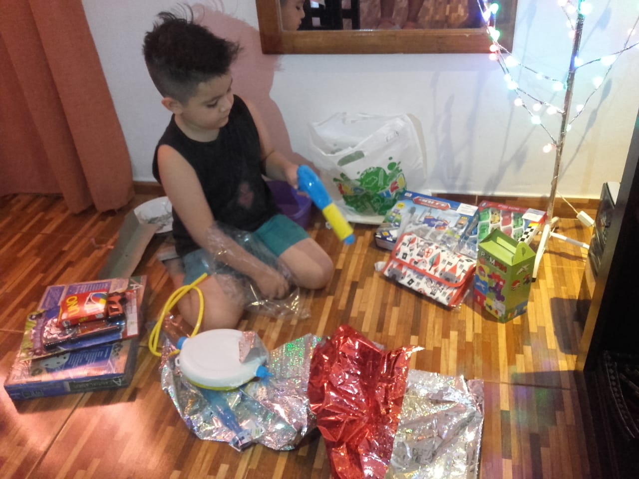 Sergio Medina Vargas tiene 6 años. Amante de los deportes y las armas, el niño recibió un aro de básquet, una pelota y una pistola. Jugó desde primera hora de la mañana.