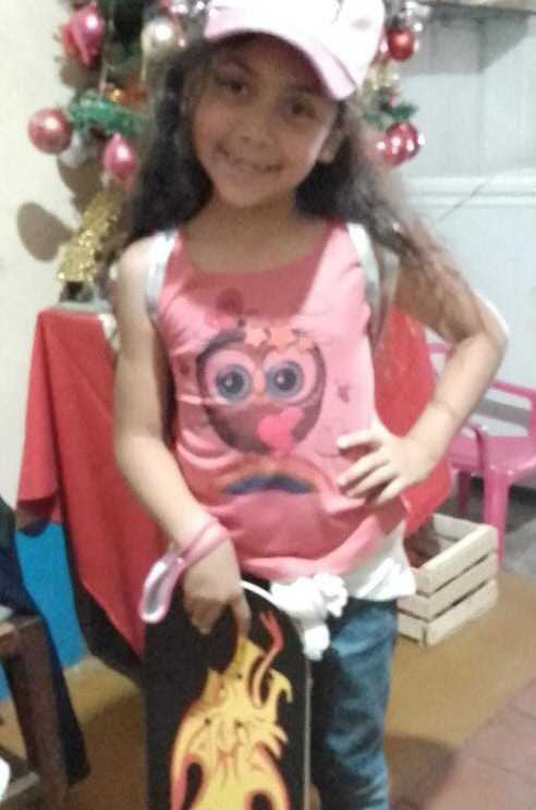 Martina Arroyo (8), de Rivadavia, lució sus aros nuevos y el skate que se puso a probar.