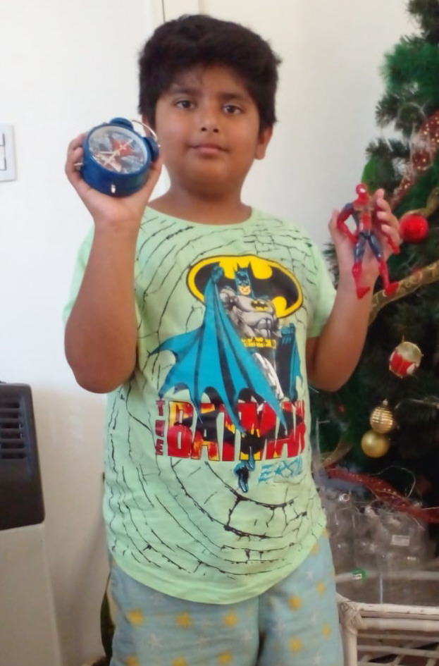 Bautista (8), de Rivadavia, recibió exactamente lo que quería: un despertador y un Spiderman.